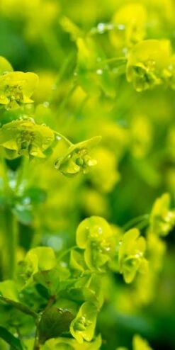 Known as the Wood Spurge this is one of the most commonly grown evergreen Euphorbias. The lime green inflorescence shows up well in the late spring against the dark green leaves.Â
