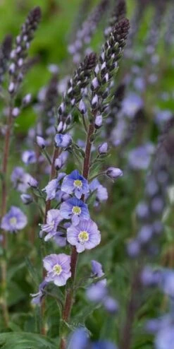 V.gentianoides Dark Form has spikes of gorgeous pale blue flowers over-laid with darker violet-blue veins, during spring. A compact perennial, this Veronica has dark stems and small green lance-shaped foliage which creates a carpet of green throughout the year. Cutting back the spent flower stems will keep this plant tidy.